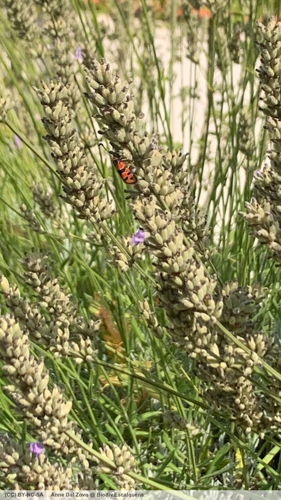 | Détails | Avec ses tâches rouges et noires bordées d’un liseré jaune, cette zygène vient butiner les dernières fleurs de lavande |